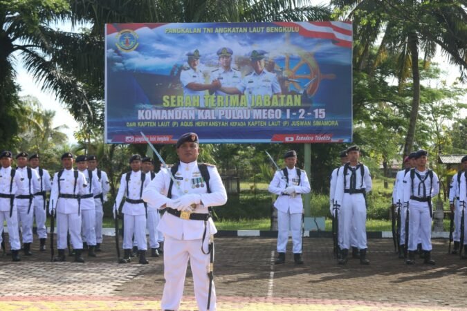MataDian.Com, Bengkulu – Komandan Pangkalan TNI Angkatan Laut Bengkulu Letkol Laut (P) Nyoman Gede Pradnyana A.S memimpin upacara serah terima jabatan (sertijab) Komandan KAL Pulau Mego I .- 2 – 15, di lapangan apel Mako Lanal Bengkulu Jl. RE Martadinata No. 10 Pulau Baai Kota Bengkulu , Rabu (30/11/2022).